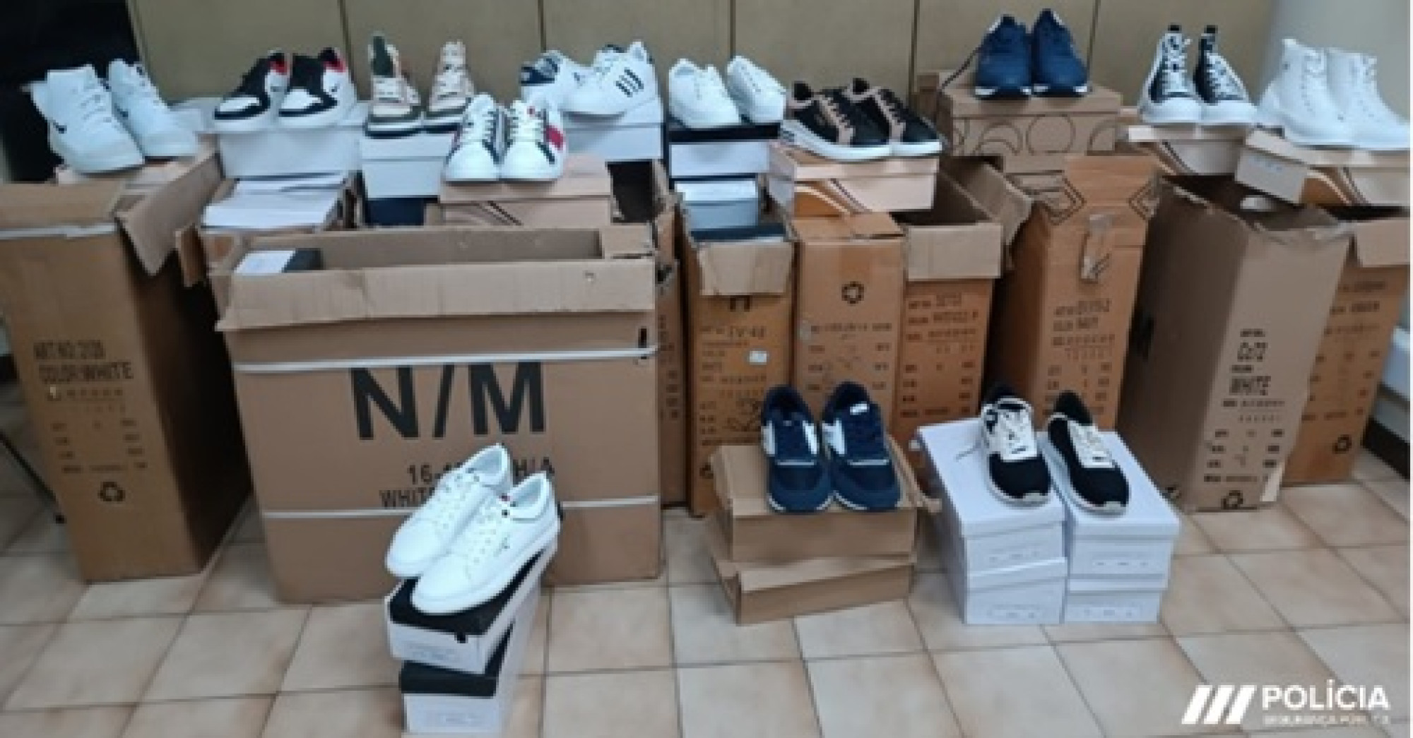 No interior da viatura que conduzia foram encontradas "mais de uma centena de sapatilhas, ostentando marcas de renome, que lhe foram apreendidas", refere a PSP em comunicado.